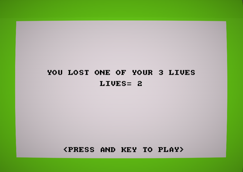 Μετά από τη σύντομη παρουσίαση οδηγιών και επιλογής πληκτρολoγίου η joystick και ενώ ακούγεται μια γλυκιά μελωδία από τη Λίμνη των Κύκνων του Τσαϊκόφσκι (ΣΣ!!!), το πρόγραμμα αρχίζει βρίσκοντάς σας με τη μορφή ενός αγωνιστικού αυτοκινήτου στην κάτω άκρη της οθόνης... Από την πάνω πλευρά έρχονται ένα ή δύο αυτοκίνητα, που πρέπει να αποφύγετε. Τα αυτοκίνητα αυτά τα οδηγούν τα τσιράκια του τρελού Δρ. Νο (ΣΣ ΩΧ!). Καθώς κατεβαίνουν τα αυτοκίνητα σέρνουν μαζί τους ένα κομμάτι ουράνιο U235 το οποίο πρέπει να πάρετε πριν αυτοί καταφέρουν να το πάνε στο Δρ. Νο που θα το τοποθετήσει στην πυρηνική βόμβα του, που θέλει κάποια τέτοια κομμάτια για να λειτουργήσει.