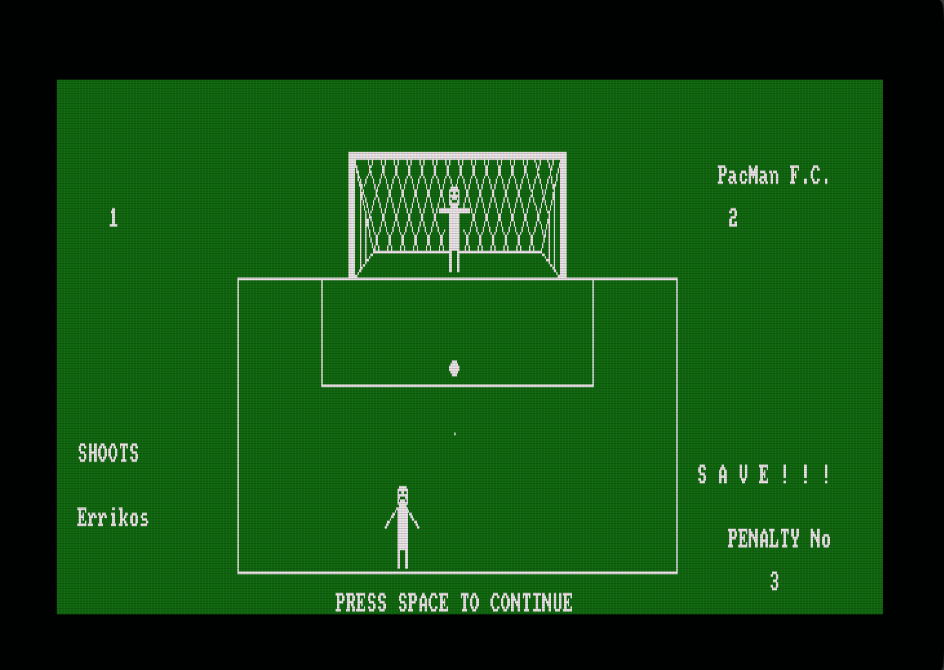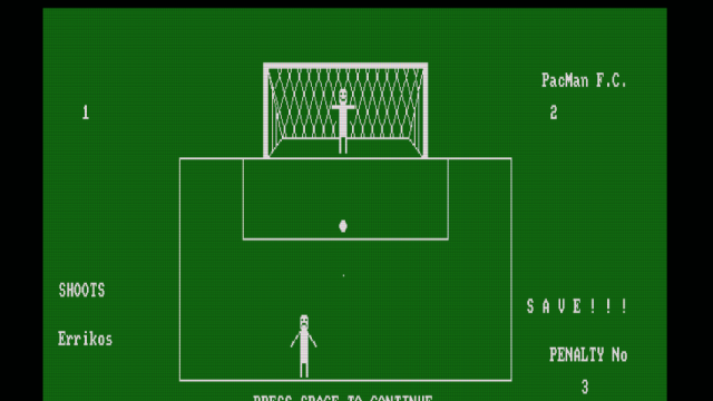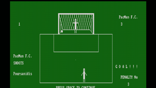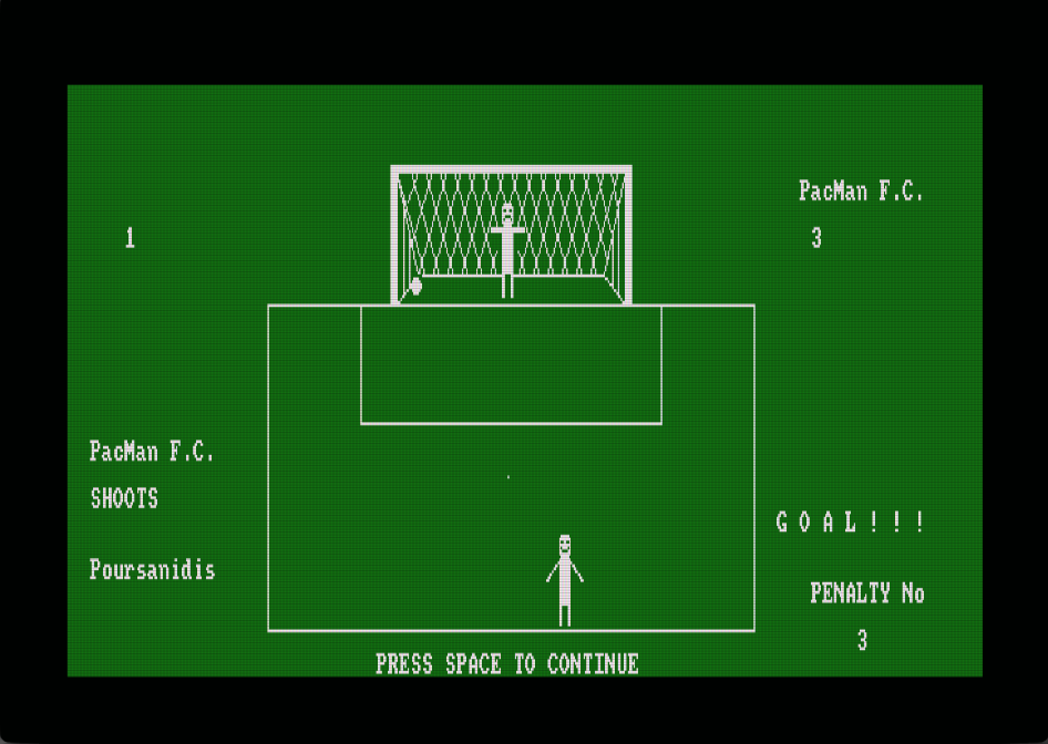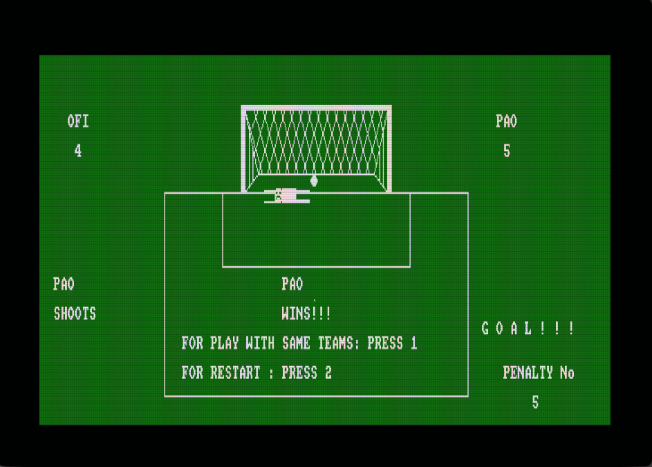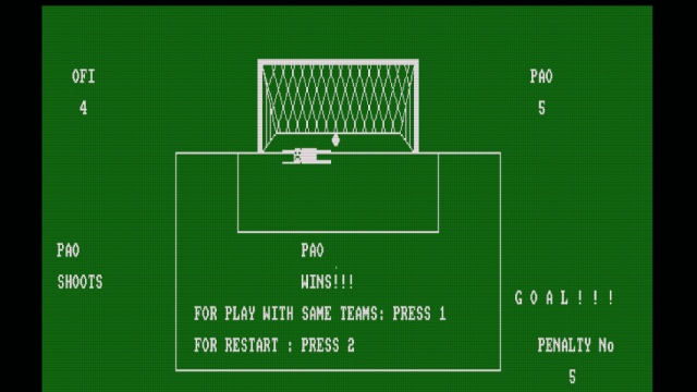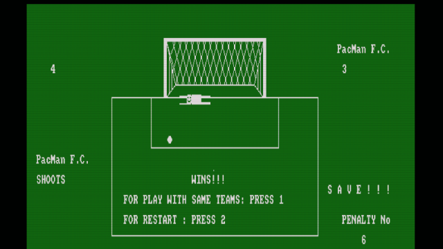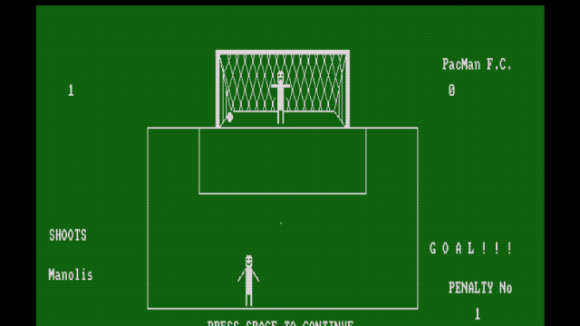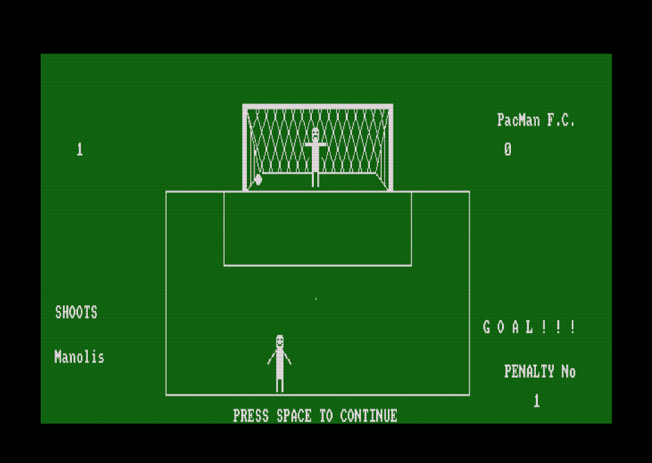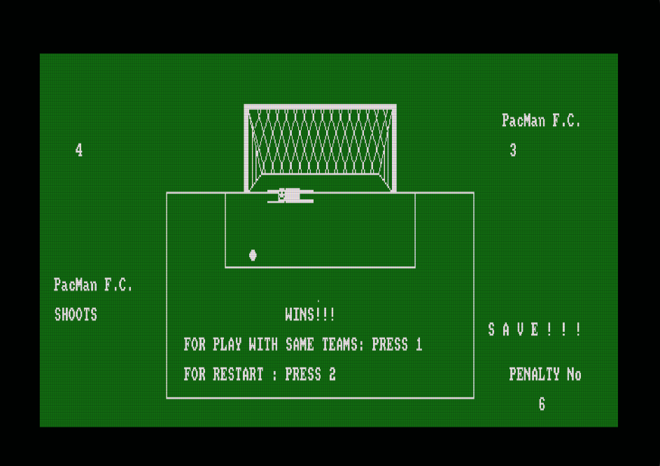 Το παιχνίδι Penalty kicks είναι ένα απλό παιχνίδι ποδοσφαίρου, για έναν ή δύο παίκτες, στο οποίο εκτελείτε πέναλτι σε τρεις κατευθύνσεις (αριστερά, δεξιά,κέντρο). Το Penalty kicks συμμετείχε στον διαγωνισμό CPCRETRODEV 2018 του Πανεπιστημίου της Αλικάντε.