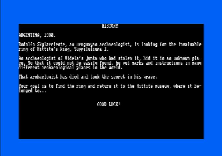 Το Rodolfo Skylarriente 1 (Ο ΑΡΧΑΙΟΛΟΓΟΣ) είναι ένα απλό παιχνίδι περιπέτειας με κείμενο (δοκιμή/λάθος πολλαπλής επιλογής). Σε αυτό το παιχνίδι, πρέπει να κάνετε τις σωστές επιλογές για να ολοκληρώσετε το παιχνίδι.