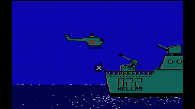 Υπάρχουν διαφορετικές μάχες, με εχθρικά αεροπλάνα όπου πρέπει να τα πετύχουμε με τα πυροβόλα αντιαεροπορικά του σκάφους και πλοία που έρχονται προς τα εμάς. Στην οθόνη φαίνονται το μπροστινό τμήμα του πλοίου που πλέει, τα εχθρικά αεροπλάνα που έρχονται από επάνω, και οι βόμβες που πέφτουν. Αν δεν καταφέρουμε να πετύχουμε το στόχο μας, χάνουμε ενέργεια. Αν εξαντληθεί, βουλιάζουμε. Αντίθετα, όταν καταστρέφουμε εχθρικά πλοία ή αεροπλάνα, αυξάνεται η ενέργειά μας. Πρέπει να πετυχαίνουμε τα εχθρικά αεροπλάνα και να προσέχουμε να μην τα μπερδεύουμε με τα ελληνικά που είναι άσπρα. Υπάρχει ακόμα μια μάχη με εχθρικά ελικόπτερα δύο τύπων που έρχονται από το πίσω μέρος του πλοίου. Πολύ καλή είναι και η μάχη εναντίον των ναρκών θαλάσσης. Εδώ πρέπει να χρησιμοποιήσουμε το ελικόπτερο του πλοίου μας και με καλοχτυπημένες βολές να ανατινάξουμε τις εχθρικές νάρκες πριν αυτές προσκρούσουν πάνω στο πλοίο μας. Τέλος, υπάρχει και η μάχη με το εχθρικό υποβρύχιο που είναι πραγματικά θανατηφόρα και πρέπει να το διαλύσουμε πριν μας καταστρέψει με την τορπίλη του.