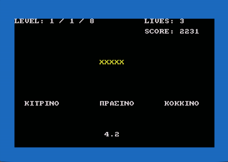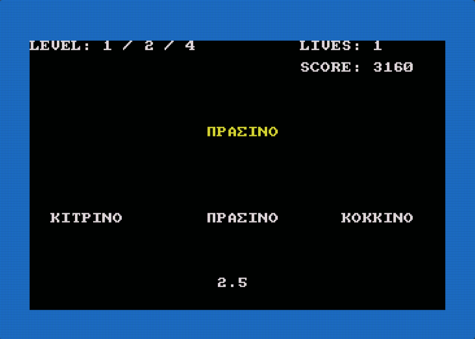 Επίσης, το επίπεδο δυσκολίας επηρεάζει τις πληροφορίες που θα σας δοθούν σχετικά με τον ΜΥΣΤΙΚΟ ΚΩΔΙΚΟ, σε περίπτωση που ολοκληρώσετε τα 3 επίπεδα του παιχνιδιού. Ο ΜΥΣΤΙΚΟΣ ΚΩΔΙΚΑΣ αποτελείται από 3 γράμματα. Μπορούν να εισαχθούν κάπου στο μενού.