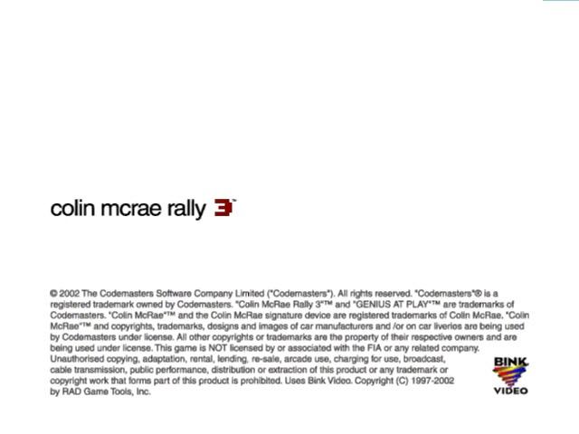 Το Colin McRae Rally 3 είναι ένα βιντεοπαιχνίδι αγώνων αυτοκινήτου του 2002, στο οποίο οι παίκτες αγωνίζονται ως ο επαγγελματίας οδηγός ράλι Colin McRae και ο συνοδηγός του Nicky Grist για να κερδίσουν το Παγκόσμιο Πρωτάθλημα Ράλι με ένα τριετές συμβόλαιο στο Ford Focus RS WRC. Το παιχνίδι είναι γνωστό για τον ρεαλισμό και την λεπτομερή προσομοίωση του αθλήματος, με αυθεντικό χειρισμό αυτοκινήτου ράλι, δυναμικές καιρικές συνθήκες (βροχή, χιόνι κ.λπ.) και διάφορα εδάφη (άσφαλτος, χαλίκι, χώμα). Η λειτουργία καριέρας περιλαμβάνει ένα τριετές πρωτάθλημα με οκτώ διεθνή ράλι, ρυθμίσεις του αυτοκινήτου στις περιοχές σέρβις και τη δυνατότητα να προκαλέσετε ζημιά στο αυτοκίνητό σας, επηρεάζοντας την απόδοσή σας.